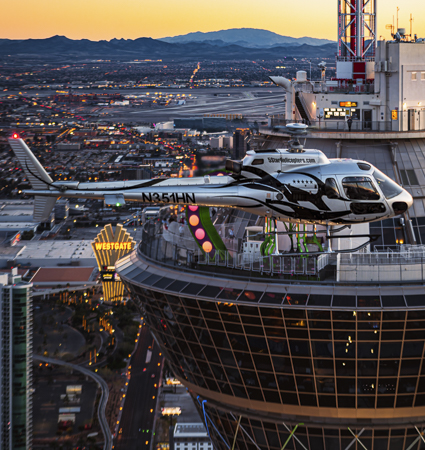 LAS VEGAS HELICOPTER TOURS - Fly on our Las Vegas helicopter tours above the Strip in a luxury jet helicopter flight specifically designed with forward-facing seats and 180 degrees of unrestricted panoramic viewing! Start the night as you celebrate your visit to Las Vegas with an amazing helicopter tour flight over the dazzling neon lights of the famous Las Vegas Strip and its World famous resorts.