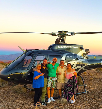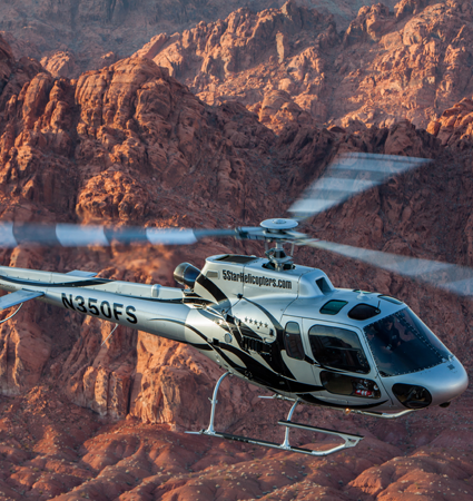 5 Star Helicopter Tours operates daily Valley of Fire helicopter tours including and exclusive 30 minute landing where your Pilot/Guide pour a cold glass of sparkling champagne, as you celebrate at one of the most picturesque locations in the world.