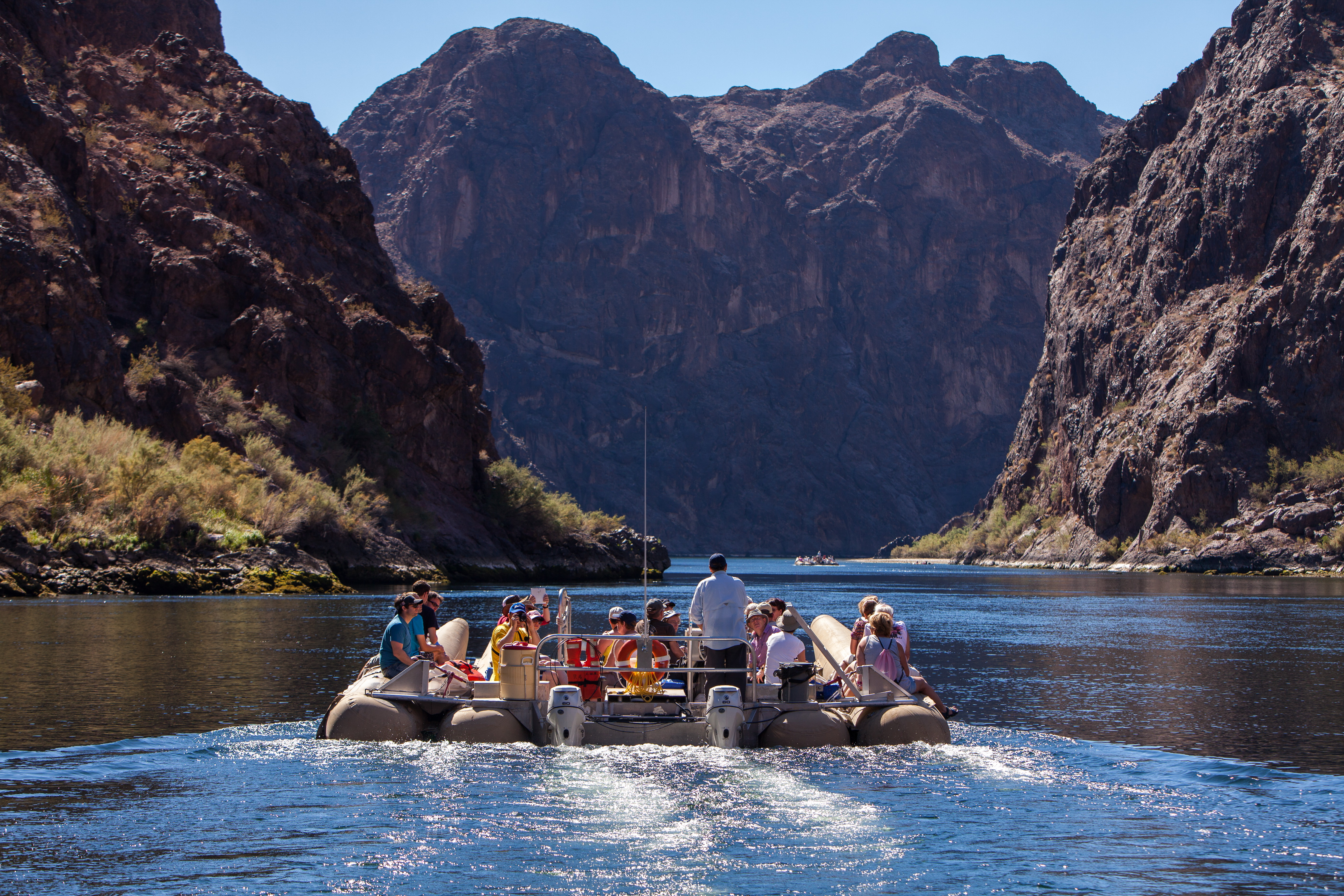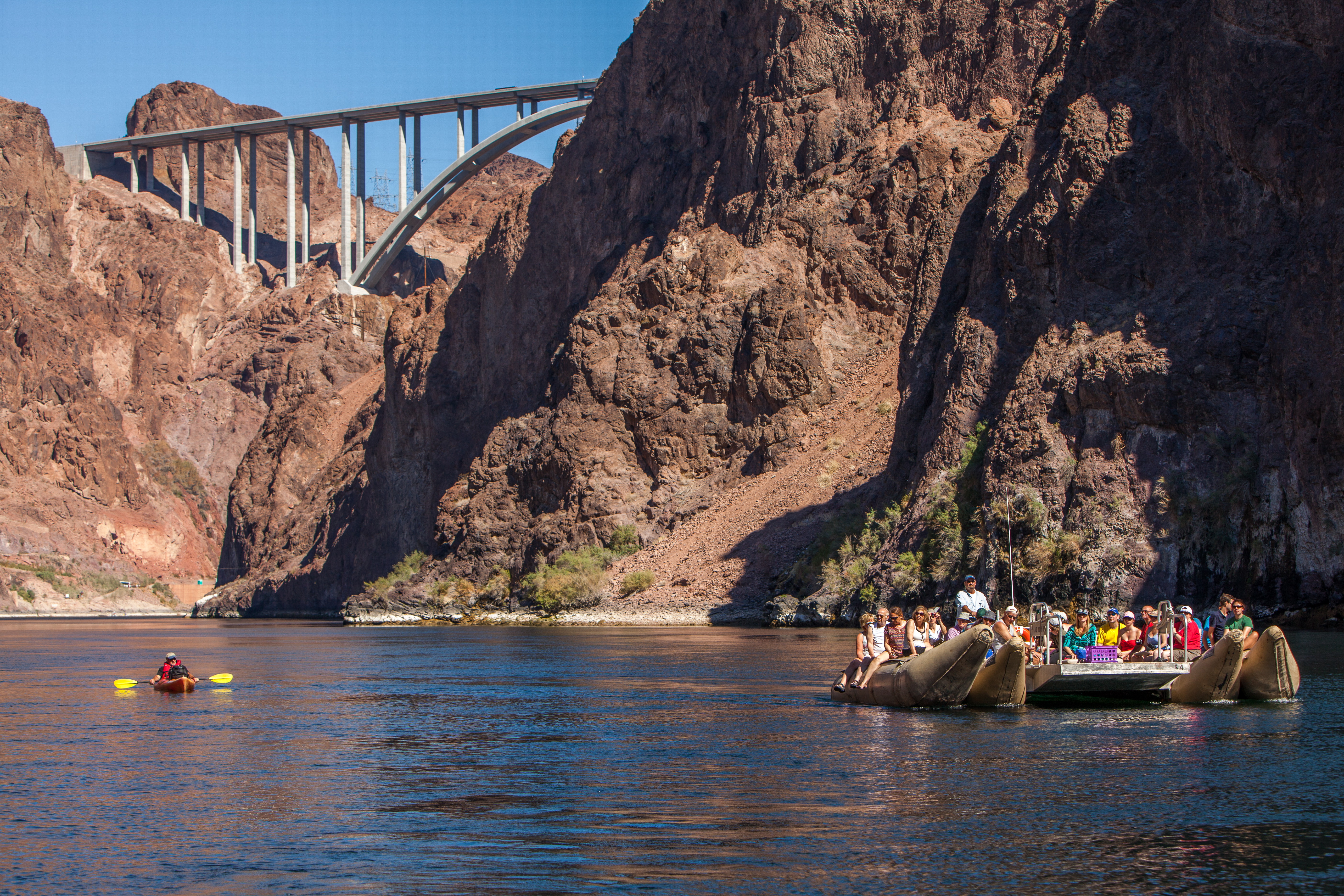 - 14 mile Guided River Raft Float ride through Black Canyon departing from the base of the Hoover Dam and Bypass Bridge