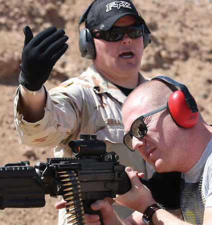 - 1 Submachine gun, 1 Machine Gun, 1 Belt Fed Machine Gun, 9mm Glock, 1 Exploding Target and the amazing Barrett .50 Cal Sniper Rifle.