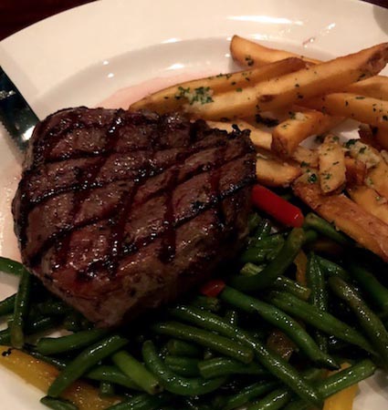 All main courses are served with garlic mashed potatoes and seasonal vegetables. Vegetarian meals available upon request.