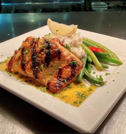1. Choice of grilled Atlantic salmon with lemon butter.