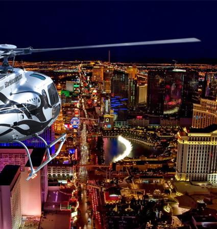 Celebrate your stay with a private Las Vegas helicopter strip flight including Cadillac Escalade hotel transfers over the stunning Las Vegas City lights!