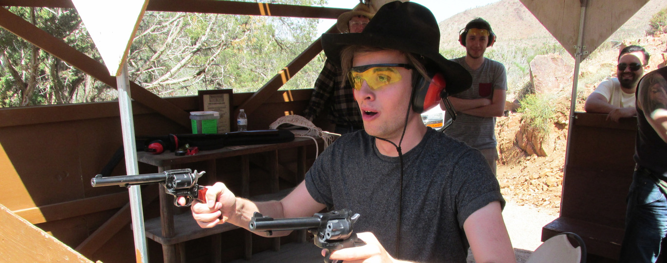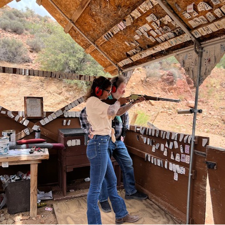 Step into the spirit of the frontier at our authentic Wild West Gun Range at Grand Canyon Western Ranch. Here, guests can fire classic Old West-style firearms, including lever-action rifles and single-action revolvers - the same types used by cowboys, lawmen, and outlaws of the 1800s! Whether you're a first-timer or a seasoned enthusiast, every shooting experience is guided by trained and experienced instructors who ensure a fun, safe, and educational environment. Our low-recoil firearms are ideal for beginners and are suitable for guests ages 12 and up. Choose from a variety of pre-paid shooting packages designed for individuals, families, and groups. It's a one-of-a-kind opportunity to channel your inner cowboy and experience the thrill of the Wild West in a setting like no other.